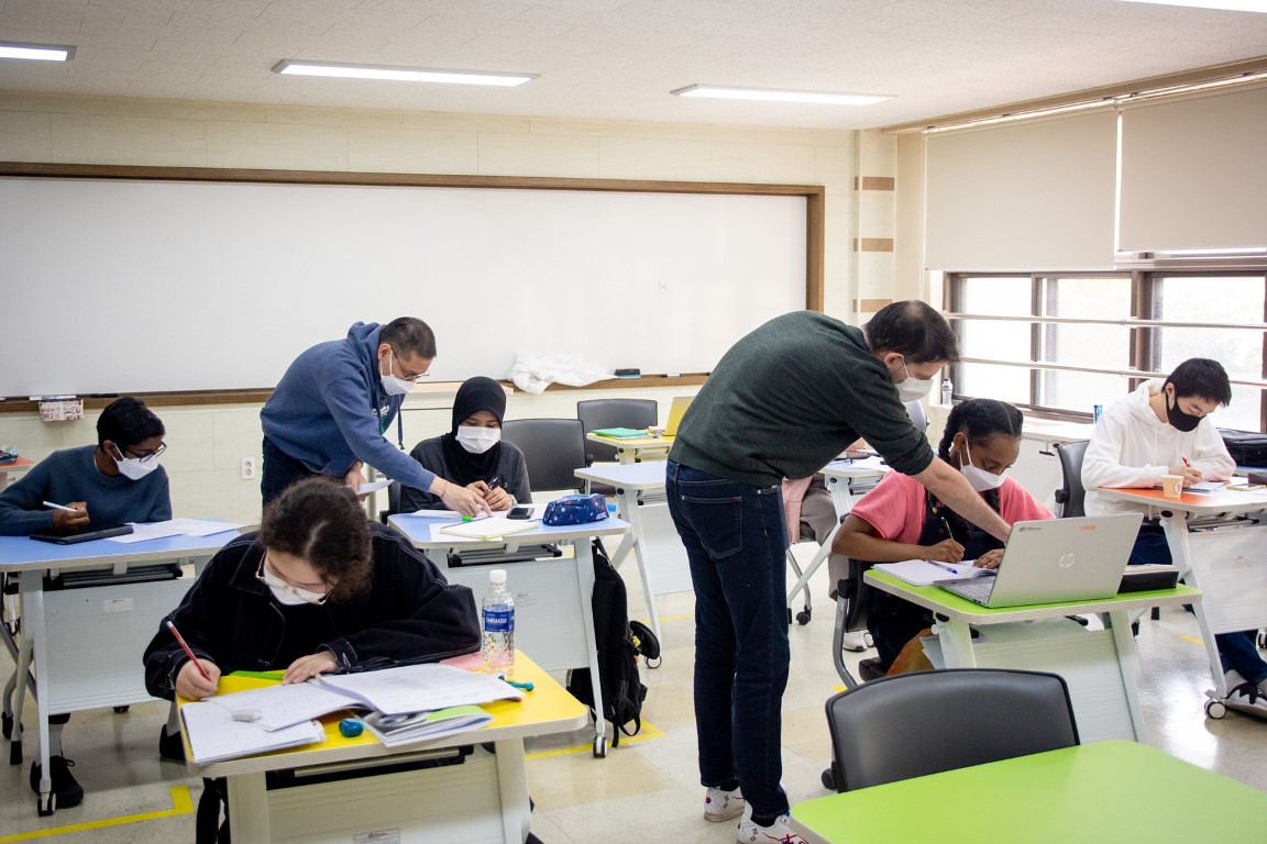 ด้วยปัจจัยเรื่องของภาษา จึงทำให้การสอนเน้นไปที่นักเรียนต่างชาติ แต่ก็ยังมีโอกาสสอนนักเรียนเกาหลีด้วยเช่นกัน ทำให้เห็นถึงความแตกต่างของการจัดการเรียนการสอนนักเรียนสองกลุ่ม