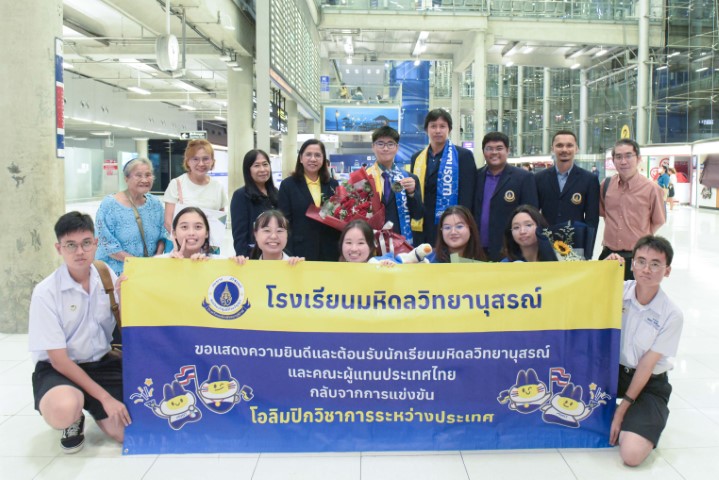 โอกาสนี้ ช่วงเย็นของวันที่ 16 สิงหาคม พ.ศ. 2567 หลังจากคณะผู้แทนโอลิมปิกและอาจารย์ผู้ควบคุมทีม เดินทางมาถึงบริเวณท่าอากาศยานสุวรรณภูมิ อาจารย์จตุภรณ์ สวัสดิ์รักษา รองผู้อำนวยการโรงเรียนมหิดลวิทยานุสรณ์ พร้อมด้วย คณะครูและนักเรียน ได้ร่วมต้อนรับและแสดงความยินดีกับ นายณัฐพฤกษ์ ศักดาภิพาณิชย์ และอาจารย์วีรวุฒิ เทียนขาว ครูสาขาวิชาเคมี ที่เดินทางไปร่วมสังเกตการณ์การจัดการแข่งขันด้วย