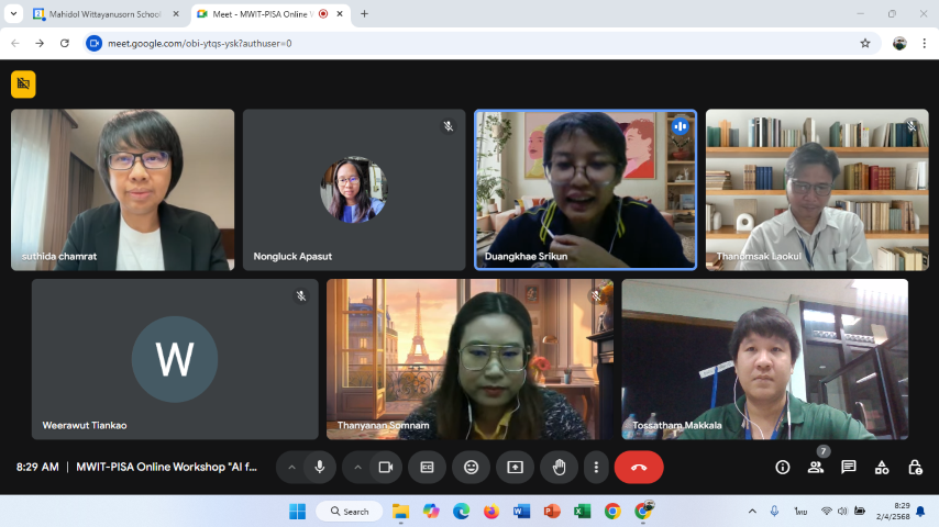 โรงเรียนมหิดลวิทยานุสรณ์จัดอบรมเชิงปฏิบัติการ “การใช้ AI เป็นตัวช่วยในการสร้างข้อสอบ PISA-Like” ให้กับคณะทำงานประเมินสมรรถนะของนักเรียนโรงเรียนมหิดลวิทยานุสรณ์ด้านความฉลาดรู้ทางคณิตศาสตร์และวิทยาศาสตร์ เมื่อวันที่ 2 เมษายน พ.ศ. 2568 ในรูปแบบออนไลน์
