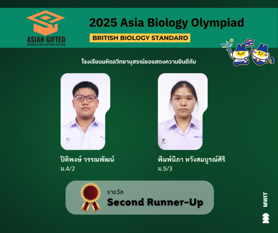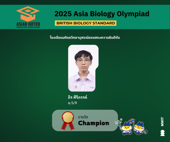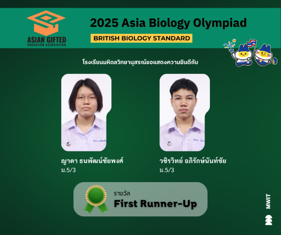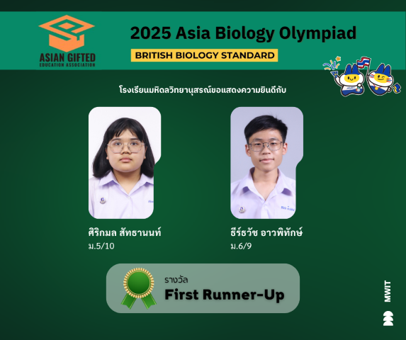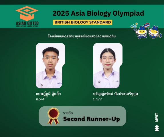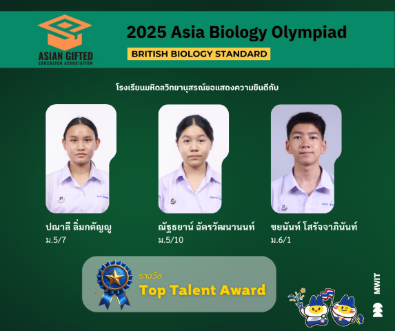 นักเรียนโรงเรียนมหิดลวิทยานุสรณ์รับรางวัลจากการแข่งขันวิชาการนานาชาติ 2025 Asia Biology Olympiad – British Biology Standard (ABBO) ซึ่งแข่งขันในรูปแบบออนไลน์ เมื่อวันที่ 12 ตุลาคม พ.ศ. 2568 และประกาศผลไปเมื่อวันที่ 17 ตุลาคม พ.ศ. 2568