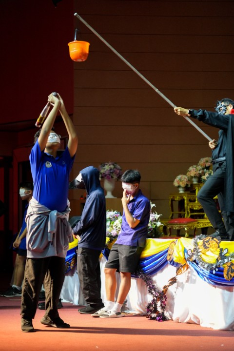 ก่อนเริ่มกิจกรรม ได้มีการจัดพิธีถวายความอาลัยแด่ สมเด็จพระนางเจ้าสิริกิติ์ พระบรมราชินีนาถ พระบรมราชชนนีพันปีหลวง โดยมี นางสาววรีรัตน์ นันทสุขเกษม นักเรียนชั้น ม.4/3 กล่าวคำอาลัย และ นางสาวพุชฌาภา เรืองมา นักเรียนชั้น ม.5/2 ขับร้องเพลงถวายอาลัย จากนั้นผู้ร่วมงานได้ร่วมยืนสงบนิ่งเป็นเวลา 1 นาที เพื่อแสดงความเคารพและน้อมรำลึกในพระมหากรุณาธิคุณ