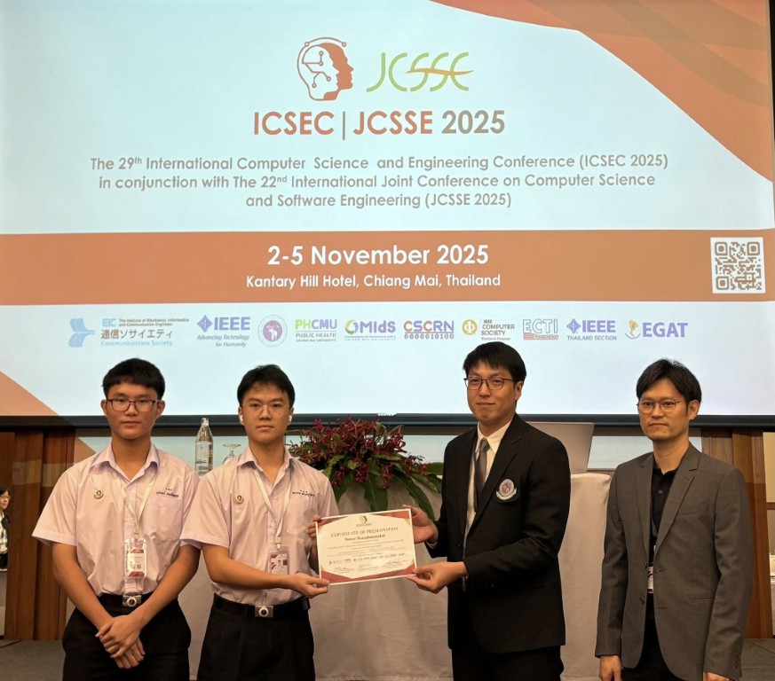 นอกจากจะได้นำเสนอผลงานในเวทีแลกเปลี่ยนความรู้ด้านคอมพิวเตอร์และวิศวกรรมศาสตร์อย่าง ICSEC 2025 แล้ว ทั้งสองผลงานยังได้รับการตีพิมพ์ในฐานข้อมูล IEEE Xplore ซึ่งเป็นฐานข้อมูลระดับโลกด้านวิศวกรรมไฟฟ้า วิทยาการคอมพิวเตอร์ และอิเล็กทรอนิกส์ ถือเป็นอีกหนึ่งความภาคภูมิใจของโรงเรียน ที่นักเรียนได้มีโอกาสแสดงศักยภาพด้านวิทยาศาสตร์ เทคโนโลยี และงานวิจัยในระดับนานาชาติได้อย่างโดดเด่นและเป็นที่ประจักษ์