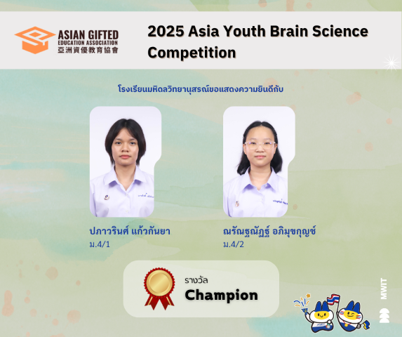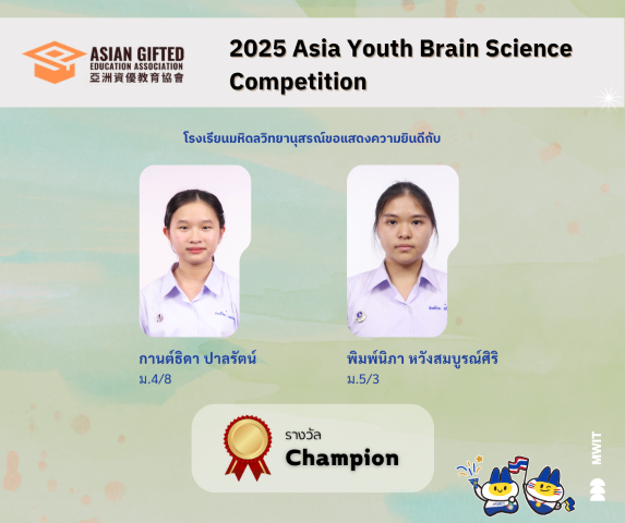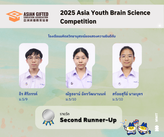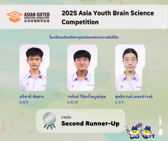 นักเรียนโรงเรียนมหิดลวิทยานุสรณ์ได้รับรางวัลจากการเข้าร่วมการแข่งขัน 2025 Asia Youth Brain Science Competition จัดโดย Asian Gifted Education (AGEA) เขตบริหารพิเศษฮ่องกงแห่งสาธารณรัฐประชาชนจีน ในรูปแบบออนไลน์ โดยมีการประกาศผลการแข่งขันเมื่อวันที่ 6 พฤศจิกายน พ.ศ. 2568 ที่ผ่านมา