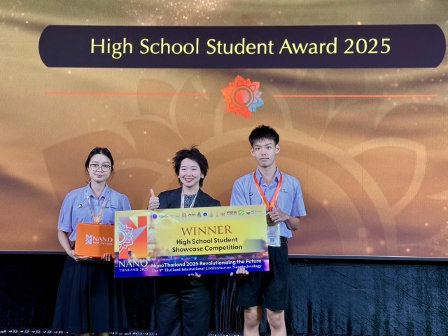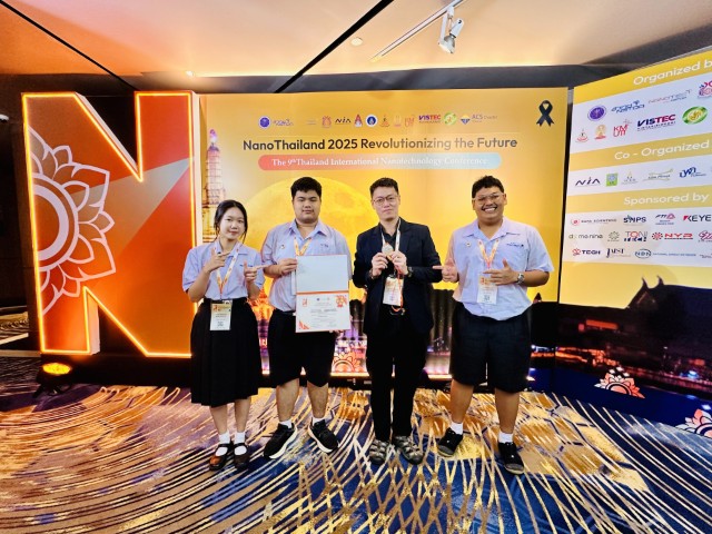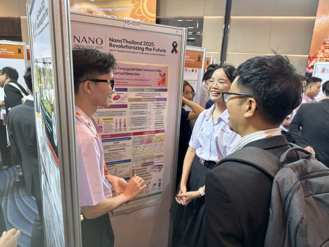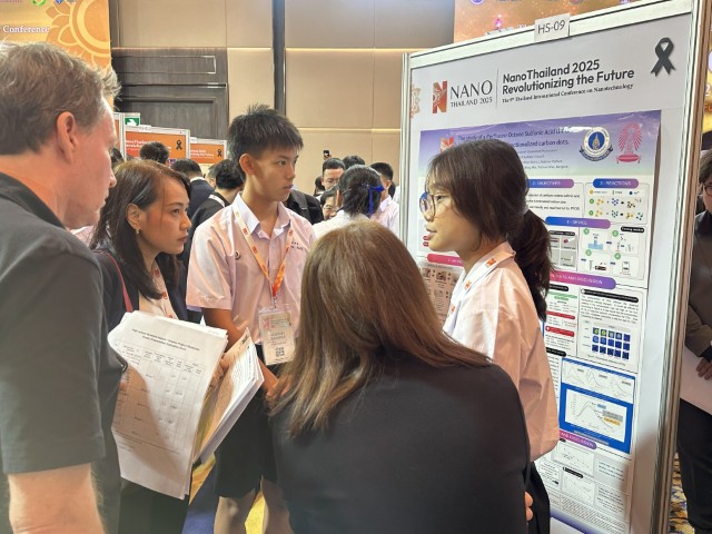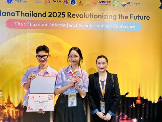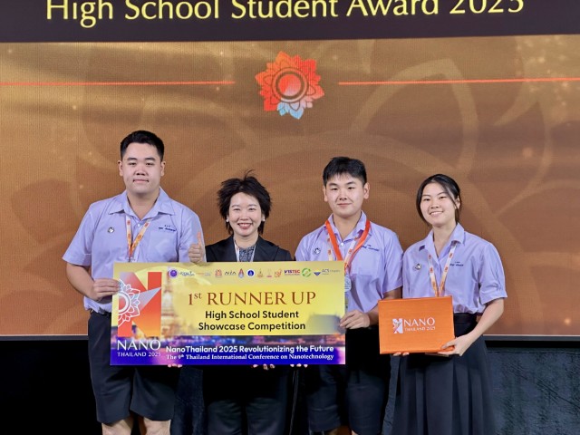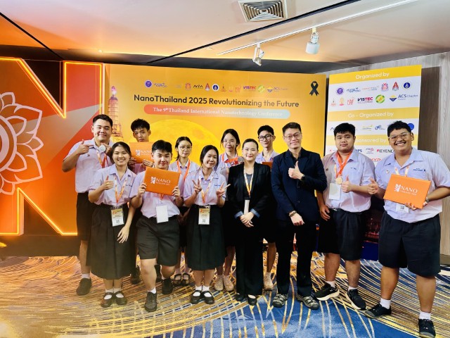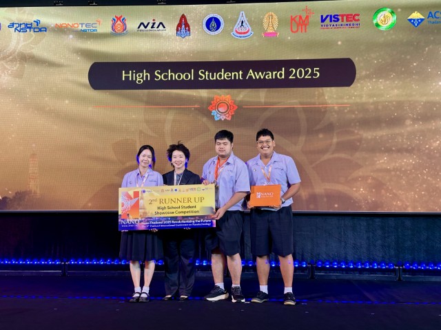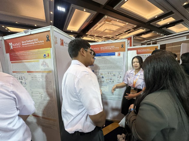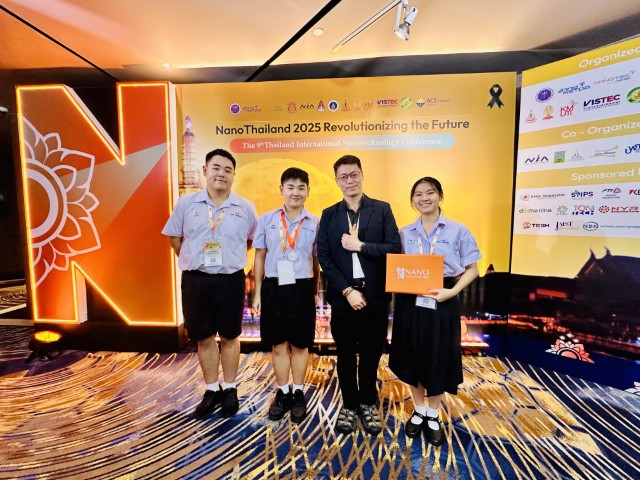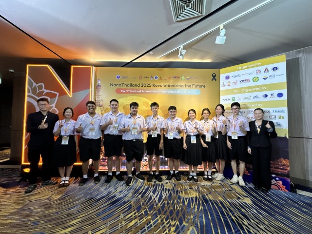 ดร.ณุจุฑา ธรรมสุเมธ และ ดร.ณรงค์ศักดิ์ ขุนรักษา ครูสาขาวิชาเคมี โรงเรียนมหิดลวิทยานุสรณ์ นำนักเรียนจำนวน 10 คน ซึ่งเป็นเจ้าของโครงงานจำนวน 4 ผลงาน เข้าร่วมประกวดโครงงานวิทยาศาสตร์ที่เกี่ยวข้องกับนาโนเทคโนโลยี ในส่วนของ High School Student Showcase Competition ในการประชุมวิชาการและนิทรรศการนาโนเทคโนโลยีระดับนานาชาติ ครั้งที่ 9 (NanoThailand 2025: The 9th Thailand International Nanotechnology Conference) ภายใต้หัวข้อ “นาโนเทคโนโลยีพลิกโฉมโลกอนาคต (Revolutionizing the Future)” จัดโดย ศูนย์นาโนเทคโนโลยีแห่งชาติ สำนักงานพัฒนาวิทยาศาสตร์และเทคโนโลยีแห่งชาติ ร่วมกับ ศูนย์เครือข่ายการวิจัยพัฒนาด้านนาโนเทคโนโลยี