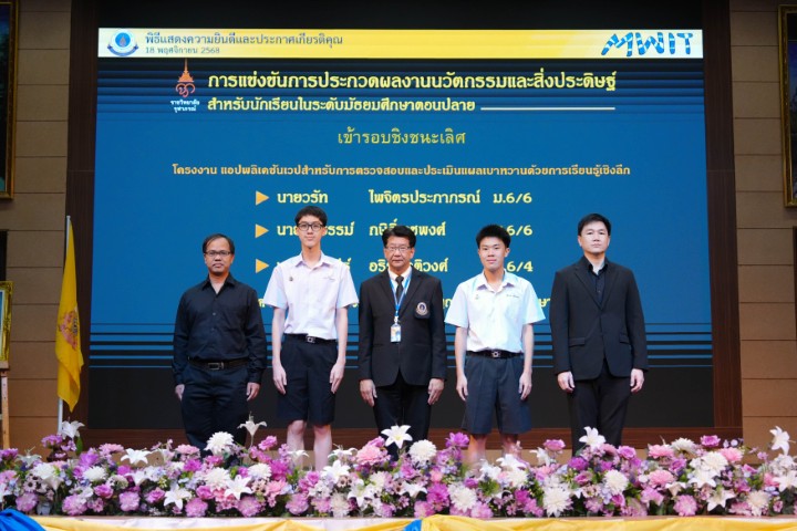 - ทีมของนายณัฐกร เหมสนิท นักเรียนชั้น ม.6/3 นายฐิติพันธ์ พฤฒิพิบูลธรรม นักเรียนชั้น ม.6/3 และ นายกรัณ คล้ำชื่น นักเรียนชั้น ม.6/2 ได้รับรางวัลชมเชย