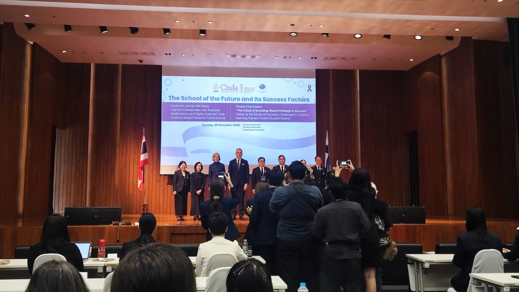 Following the lecture, there was a discussion session in the format of a “Fireside Chat: The Future of Schooling – Shared Pathways to Success.” The Dean of the Faculty of Education, Chulalongkorn University, and distinguished experts in Thai education participated as panelists.