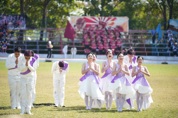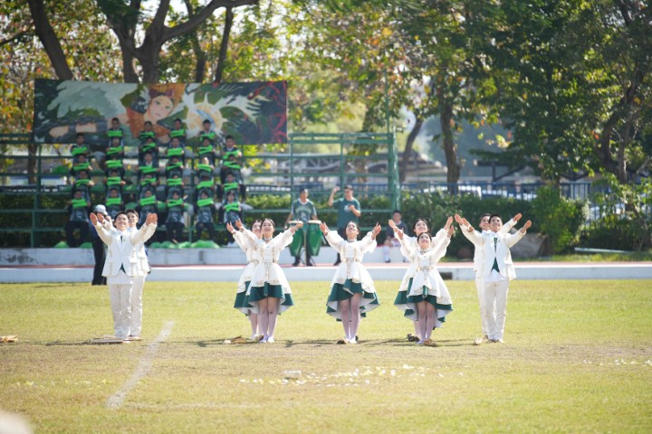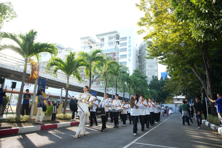 เช้านี้บรรยากาศในโรงเรียนคึกคักตั้งแต่รุ่งสาง เด็ก ๆ ตื่นแต่เช้าเพื่อเตรียมความพร้อม ทั้งการแต่งหน้า ทำผม และจัดแต่งเครื่องแต่งกาย ก่อนขนทัพการแสดงมาอย่างอลังการ ไม่ว่าขบวนพาเหรด คทากรและคัลเลอร์การ์ด รวมถึงผู้นำเชียร์และกองเชียร์ที่พร้อมสร้างสีสันอย่างเต็มที่ นอกจากนี้ ยังมีการแข่งขันกีฬาฟุตบอล 9 คน รอบชิงชนะเลิศ และกิจกรรมกีฬาสานสัมพันธ์ “สามัคคีคือพลัง” ที่เชื่อมโยงผู้ปกครอง นักเรียน และบุคลากรให้มีช่วงเวลาร่วมกันที่ทั้งงดงามและน่าจดจำ