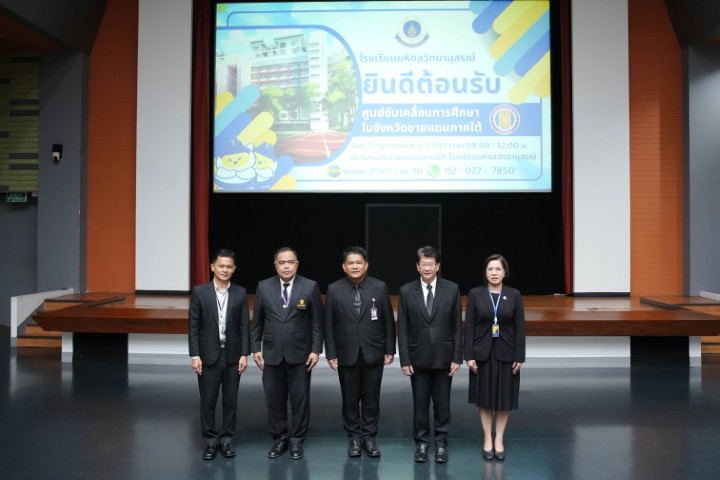 รองศาสตราจารย์ ดร.พาสิทธิ์ หล่อธีรพงศ์ ผู้อำนวยการโรงเรียนมหิดลวิทยานุสรณ์ พร้อมด้วยคณะบุคลากร ให้การต้อนรับคณะผู้บริหารและผู้อำนวยการสถานศึกษาในสังกัดศูนย์ขับเคลื่อนการศึกษาในจังหวัดชายแดนภาคใต้ ในโอกาสเดินทางมาเยี่ยมชมและศึกษาดูงานแหล่งเรียนรู้ของโรงเรียน พร้อมแลกเปลี่ยนประสบการณ์การจัดกิจกรรมการเรียนการสอนและกิจกรรมการเรียนรู้นอกห้องเรียน ด้านคณิตศาสตร์ วิทยาศาสตร์ และเทคโนโลยี เมื่อวันที่ 20 มกราคม พ.ศ. 2569 ณ ห้องฉายภาพยนตร์สามมิติ โรงเรียนมหิดลวิทยานุสรณ์
