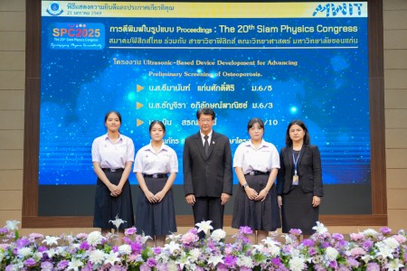 - โครงงานเรื่อง “Ultrasonic-Based Device Development for Advancing Preliminary Screening of Osteoporosis” ผลงานของ นางสาวธีมานันท์ แก่นศักดิ์ศิริ นักเรียนชั้นมัธยมศึกษาปีที่ 6/5 นางสาวธัญจิรา อภิลักษณ์พาณิชย์ นักเรียนชั้นมัธยมศึกษาปีที่ 6/3 และ นางสาวมิน สรณาคมน์ นักเรียนชั้นมัธยมศึกษาปีที่ 6/10 โดยมี ดร.ณภัทร กุลรัตน์ เป็นอาจารย์ที่ปรึกษาโครงงาน