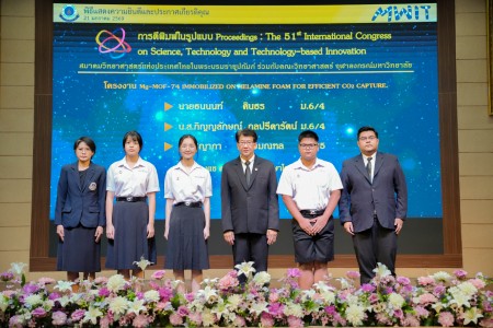 - โครงงานเรื่อง “Mg-MOF-74 Immobilized on Melamine Foam for Efficient CO₂ Capture” ผลงานของ นายธนนนท์ คินธร นักเรียนชั้นมัธยมศึกษาปีที่ 6/4 นางสาวภิญญลักษณ์ กุลปรีดารัตน์ นักเรียนชั้นมัธยมศึกษาปีที่ 6/4 และ นางสาวชญาภา สุริยมณฑล นักเรียนชั้นมัธยมศึกษาปีที่ 6/5 โดยมี ดร.ดวงแข ศรีคุณ เป็นอาจารย์ที่ปรึกษาโครงงาน