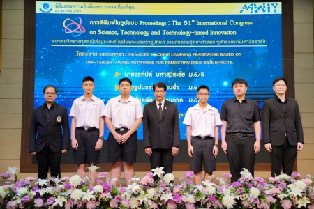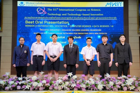 - โครงงานเรื่อง “SIDEOFFNET: Enhanced Machine Learning Framework Based on Off-Target-Aware Networks for Predicting Drug Side Effects” ผลงานของ นายจิรทีปต์ มหาสุวีระชัย นายฐปนรรฆ์ หวานฉ่ำ และ นายกันตพัฒน์ ปานกรด นักเรียนชั้นมัธยมศึกษาปีที่ 6/5 โดยมี ดร.สิทธิโชค โสมอ่ำ และ ดร.วรพันธ์ หอมสมบูรณ์ เป็นอาจารย์ที่ปรึกษาโครงงาน ได้รับรางวัล Best Oral Presentation จาก SESSION D MATHEMATICS / STATISTICS / COMPUTER SCIENCE / DATA SCIENCE / AI