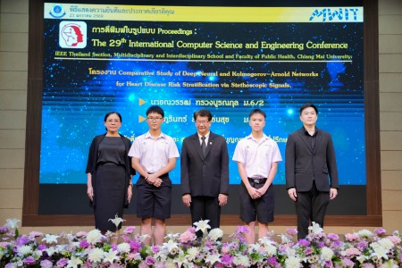 - โครงงานเรื่อง “Comparative Study of Deep Neural and Kolmogorov–Arnold Networks for Heart Disease Risk Stratification via Stethoscopic Signals” ผลงานของ นายณวรรฒ ทรวงบูรณกุล และ นายภูรินทร์ สมบัติธนสุข นักเรียนชั้นมัธยมศึกษาปีที่ 6/2 โดยมี ดร.ศิริพร ศักดิ์บุญญารัตน์ และ ดร.บุญนที ศักดิ์บุญญารัตน์ เป็นอาจารย์ที่ปรึกษาโครงงาน