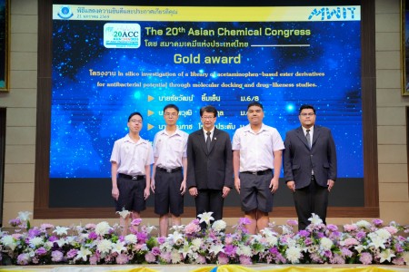 - โครงงานเรื่อง “In silico investigation of a library of acetaminophen-based ester derivatives for antibacterial potential through molecular docking and drug-likeness studies” ผลงานของ นายชัยวัฒน์ ยิ้มเย็น นักเรียนระดับชั้นมัธยมศึกษาปีที่ 6/8 นายณพวุฒิ ฉายากุล นักเรียนระดับชั้นมัธยมศึกษาปีที่ 6/8 และ นายคุณภาช โรจนาประดับ นักเรียนระดับชั้นมัธยมศึกษาปีที่ 6/7 โดยมี ดร.สิริหทัย ศรีขวัญใจ และ ดร.สรชัย แซ่ลิ่ม เป็นอาจารย์ที่ปรึกษาโครงงาน ได้รับเหรียญทอง (Gold Award)