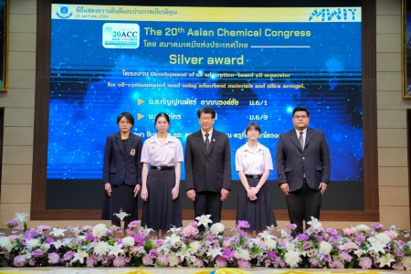 - โครงงานเรื่อง “Development of an adsorption-based oil separator for oil-contaminated sand using adsorbent materials and silica aerogel” ผลงานของ นางสาวกัญญ์ณพัชร์ ลาภณรงค์ชัย นักเรียนชั้นมัธยมศึกษาปีที่ 6/1 และ นางสาวสิริภัทร ศุขมณี นักเรียนชั้นมัธยมศึกษาปีที่ 6/9 โดยมี ดร.อุษา จีนเจนกิจ และ ดร.ดวงแข ศรีคุณ เป็นอาจารย์ที่ปรึกษาโครงงาน ได้รับ รางวัลเหรียญเงิน (Silver award)
