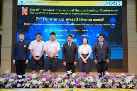 - โครงงานเรื่อง “Synthesizing mesoporous silica nanoparticles from rice husk for releasing essential oils” ผลงานของ นางสาวกฤษกะรัต แก้วน้อย นายกรัณ คล้ำชื่น และ นายศุภฤกษ์ ยอดมุณี นักเรียนชั้นมัธยมศึกษาปีที่ 6/2 โดยมี ดร.ณรงค์ศักดิ์ ขุนรักษา เป็นอาจารย์ที่ปรึกษาโครงงาน ได้รับรางวัลรองชนะเลิศอันดับ 2 (Bronze Medal)