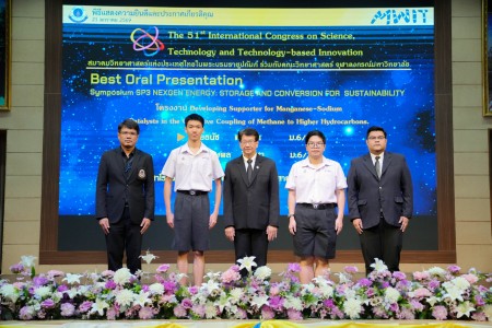 - โครงงานเรื่อง “Developing Supporter for Manganese-Sodium Catalysts in the Oxidative Coupling of Methane to Higher Hydrocarbons” ผลงานของ นายธนัช ศรีโคตา นักเรียนชั้นมัธยมศึกษาปีที่ 6/3 และ นายกฤษพล สิงห์ชา นักเรียนชั้นมัธยมศึกษาปีที่ 6/1 โดยมี ดร.สาโรจน์ บุญเส็ง และ รองศาสตราจารย์ ดร.อนุสรณ์ สืบสาย เป็นอาจารย์ที่ปรึกษาโครงงาน ได้รับรางวัล Best Oral Presentation จาก Symposium SP3 NEXGEN ENERGY: STORAGE AND CONVERSION FOR SUSTAINABILITY
