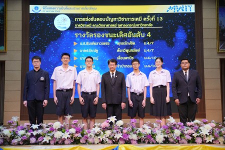 - ทีมของ นางสาวพิมพ์พราวเพชร พุทธรักษ์ขิต นักเรียนชั้นมัธยมศึกษาปีที่ 4/7 และ นายชวัลณัฐ ตั้งทวีพูนทรัพย์ นักเรียนชั้นมัธยมศึกษาปีที่ 4/7 ได้รับรางวัลรองชนะเลิศอันดับ 4 พร้อมเงินรางวัล 1,000 บาท