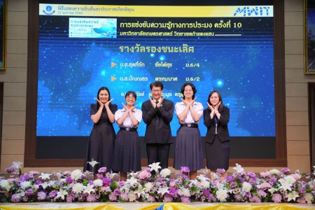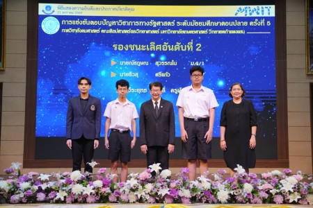 - ทีมของ นางสาวพิมพ์พราวเพชร พุทธรักษ์ขิต และ นายชวัลณัฐ ตั้งทวีพูนทรัพย์ นักเรียนชั้นมัธยมศึกษาปีที่ 4/7 ได้รับรางวัลรองชนะเลิศอันดับ 1 พร้อมเงินรางวัล 10,000 บาท