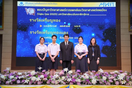 - โครงงานเรื่อง “Development of Porous Ceramic Substrate for Soilless Cultivation and Water Reduction in Short-Lifecycle Crops” ผลงานของ นางสาวฐิติพร โท้เป๋า และ นางสาวอนันตญา อัครวิเนค นักเรียนชั้นมัธยมศึกษาปีที่ 6/3 โดยมี อาจารย์วีรวุฒิ เทียนขาว เป็นอาจารย์ที่ปรึกษาโครงงาน ได้รับรางวัลเหรียญทองแดง สาขา Environmental Science