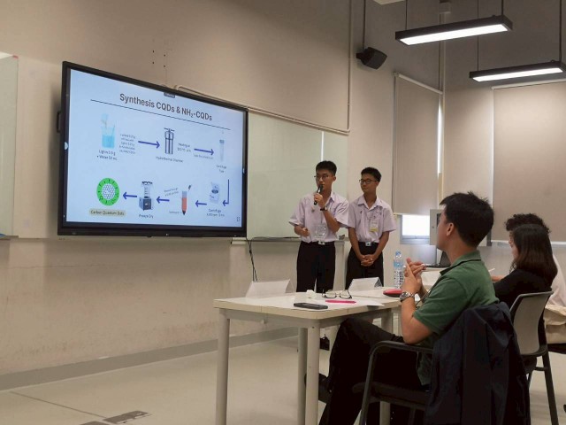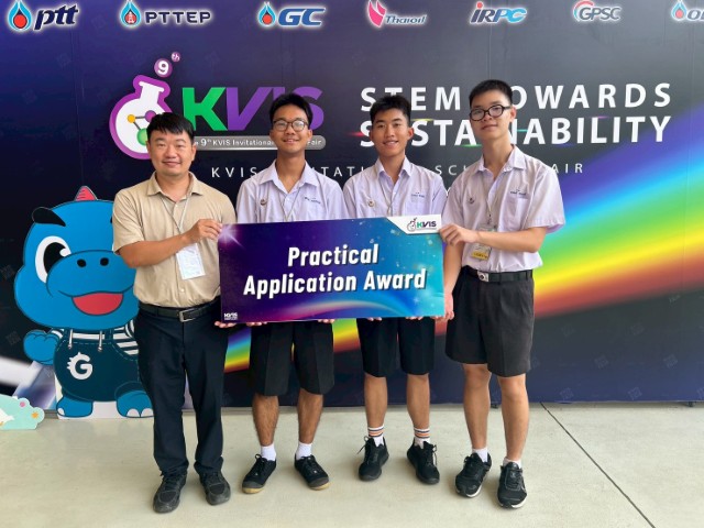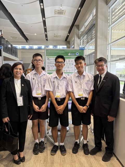 พร้อมกันนี้ ดร.ศุภกร ตันติศรียานุรักษ์ ครูสาขาวิชาเคมี ได้นำ นายวีรศรุต ทาละลัย นักเรียนชั้น ม.5/6 นายวชิรวิทย์ สงวนวิชัยกุล นักเรียนชั้น ม.5/6 และ นายตะลันต์ ลออวงศ์ นักเรียนชั้น ม.5/10 เข้าร่วมนำเสนอโครงงานเรื่อง “Development of Food Packaging Film from Lignin-Derived NH2-CQDs for Antibacterial Protection, Antioxidant Activity, and Food Spoilage Reduction” ซึ่ง ดร.ศุภกร ตันติศรียานุรักษ์ เป็นที่ปรึกษาโครงงาน ร่วมกับ อาจารย์อารีย์ สักยิ้ม ครูสาขาวิชาชีววิทยาและวิทยาศาสตร์สุขภาพ โดยนักเรียนคว้ารางวัล Practical Application Award สาขาวัสดุศาสตร์ (Materials Science) จากการนำเสนอโครงงานในงานดังกล่าว