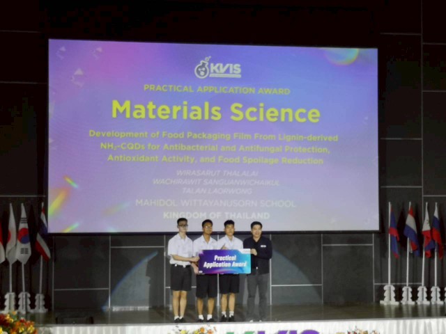 นักเรียนโรงเรียนมหิดลวิทยานุสรณ์คว้ารางวัล Practical Application Award สาขาวัสดุศาสตร์ (Materials Science) จากการเข้าร่วมงานนิทรรศการวิทยาศาสตร์นานาชาติ ครั้งที่ 9 (the 9th KVIS Invitational Science Fair 2026) ซึ่งจัดขึ้นระหว่างวันที่ 2–7 กุมภาพันธ์ พ.ศ. 2569 ณ โรงเรียนกำเนิดวิทย์ จังหวัดระยอง