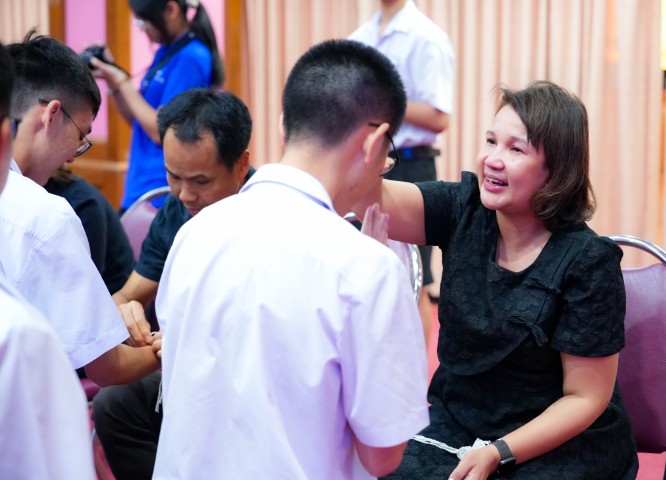 ภายในกิจกรรมมีการรับชมวิดีทัศน์แทนใจจากบุคลากร เพื่อถ่ายทอดกำลังใจและคำอวยพรแก่นักเรียนชั้นมัธยมศึกษาปีที่ 6 ก่อนเข้าสู่พิธีผูกข้อมือนักเรียน โดยผู้บริหารและบุคลากร สะท้อนความห่วงใยและความปรารถนาดี นอกจากนี้ ตัวแทนนักเรียนจากแต่ละระดับชั้นได้ร่วมกล่าวแสดงความรู้สึกจากใจ พร้อมกิจกรรมสายรหัสที่ช่วยเชื่อมโยงความสัมพันธ์ระหว่างรุ่น สร้างรอยยิ้ม ความประทับใจ และช่วงเวลาที่น่าจดจำ