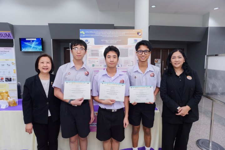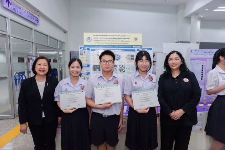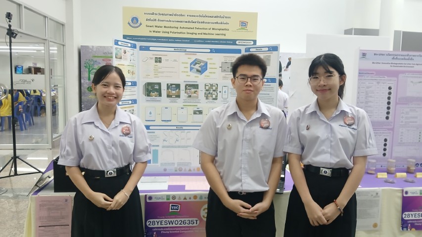 - สาขาวิทยาศาสตร์โลกและสิ่งแวดล้อม ได้แก่ โครงงานเรื่อง “ระบบเฝ้าระวังคุณภาพน้ำอัจฉริยะ: การตรวจวัดไมโครพลาสติกในน้ำแบบอัตโนมัติด้วยการประมวลผลภาพเชิงโพลาไรเซชันและแมชชีนเลิร์นนิง” ผลงานของ นางสาวอรัญญ์สรัตน์ ปังประเสริฐกุล นักเรียนชั้น ม.5/9 นางสาวพิมพ์มาดา แสงทอง นักเรียนชั้น ม.5/3 และ นายภัทรธร อินทรพักตร์ นักเรียนชั้น ม.5/3 โดยมี ดร.นิทัศน์ ศรีพงษ์พันธ์ ครูสาขาวิชาฟิสิกส์ และ อาจารย์จีรวรรณ บัวประทุม ครูสาขาวิชาคณิตศาสตร์และวิทยาการคำนวณ เป็นที่ปรึกษาโครงงาน