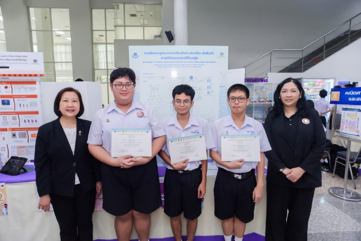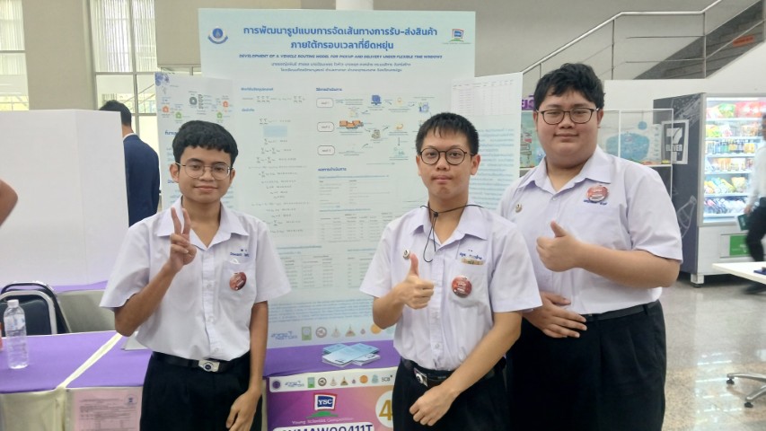 - สาขาคณิตศาสตร์และสถิติ ได้แก่ โครงงานเรื่อง “การพัฒนารูปแบบการจัดเส้นทางการรับ-ส่งสินค้าภายใต้กรอบเวลาที่ยืดหยุ่น” ผลงานของ นายยชญ์ขพันธ์ สายชล นักเรียนชั้น ม.5/10 นายป้อมเพชร ใจห้าว นักเรียนชั้น ม.5/10 และ นายชยุต คงคล้าย นักเรียนชั้น ม.5/10 โดยมี ดร.มนสิการ จันทร์สร้าง ครูสาขาวิชาคณิตศาสตร์และวิทยาการคำนวณ เป็นที่ปรึกษาโครงงาน