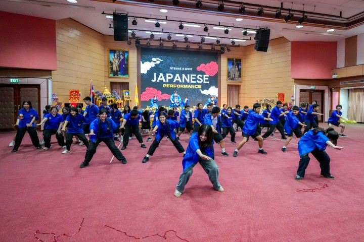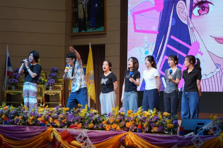 ความคึกคักของเวทีดำเนินต่อด้วยการแสดงโซรันบุชิอันเข้มแข็งและทรงพลัง จากนักศึกษาฝึกสอนของ Otemae University ที่ผสานจังหวะกับนักเรียนโรงเรียนมหิดลวิทยานุสรณ์อย่างกลมกลืน สะท้อนความร่วมมือเชิงวิชาการในมิติการแลกเปลี่ยนวัฒนธรรม ก่อนเปิดพื้นที่ให้ผู้ร่วมงานได้สัมผัสเสน่ห์ของการละเล่นพื้นบ้านเกาหลี เสริมบรรยากาศด้วยการแสดงสไตล์เกาหลีจากชมรม Step Dance ควบคู่กับกิจกรรมตอบคำถามความรู้เกี่ยวกับวัฒนธรรมเกาหลีที่ทั้งสนุกสนานและอัดแน่นด้วยสาระ ก่อให้เกิดการเรียนรู้เชิงประสบการณ์ร่วมกันอย่างแท้จริง
