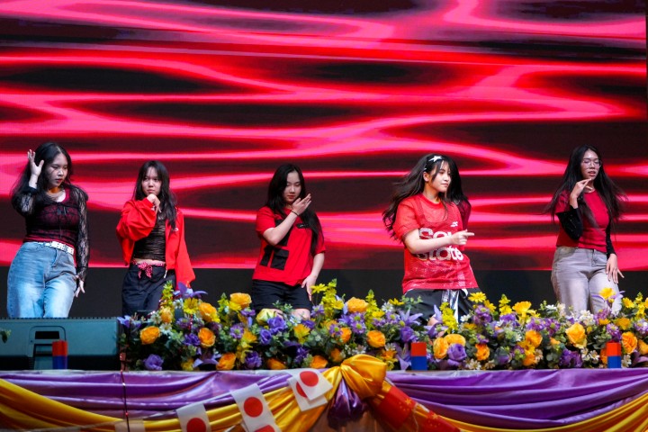 The energy continued with the powerful Soran Bushi, expertly performed by our Otemae University interns plus MWIT students, before we invited the audience to dive into traditional Korean games. The Step Dance Club then electrified the stage with their Korean performance, followed by a fun-filled Korean Trivia.