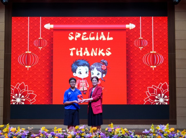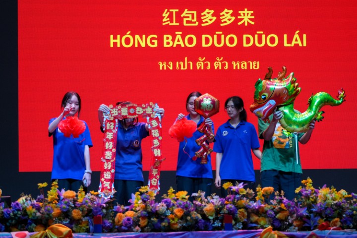 กิจกรรมเริ่มต้นด้วยการถวายความอาลัยและน้อมรำลึกในพระมหากรุณาธิคุณอันหาที่สุดมิได้ของ สมเด็จพระนางเจ้าสิริกิติ์ พระบรมราชินีนาถ พระบรมราชชนนีพันปีหลวง ท่ามกลางบรรยากาศแห่งความสงบนิ่ง ก่อนเข้าสู่การแสดงเชิดมังกรจีนแบบดั้งเดิม โดยนักเรียนจากห้องเรียนวิชาภาษาจีน ซึ่งถ่ายทอดอัตลักษณ์และจิตวิญญาณของวัฒนธรรมจีนได้อย่างสง่างาม เปี่ยมชีวิตชีวา และทรงพลัง