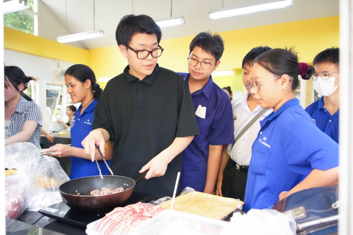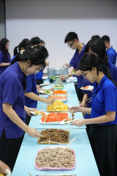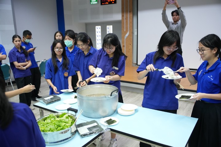 “มากิซูชิ” (巻き寿司) หรือซูชิแบบม้วน หนึ่งในเมนูพื้นฐานของอาหารญี่ปุ่น ถูกนำมาใช้เป็นสื่อการเรียนรู้เชิงสร้างสรรค์ นักเรียนได้ลงมือปฏิบัติจริง ตั้งแต่การเตรียมข้าวซูชิ การจัดวางวัตถุดิบบนแผ่นสาหร่าย การใช้เสื่อไม้ไผ่ (makisu) สำหรับการม้วน ไปจนถึงเทคนิคการตัดและจัดเสิร์ฟอย่างถูกต้องตามแบบแผนวัฒนธรรมญี่ปุ่น