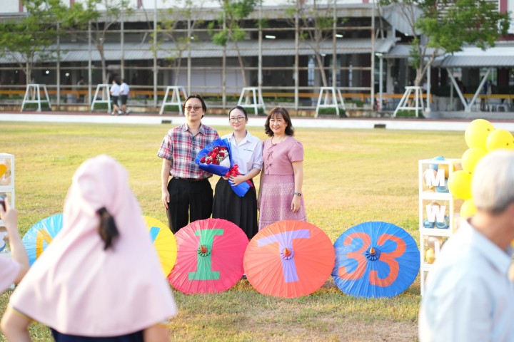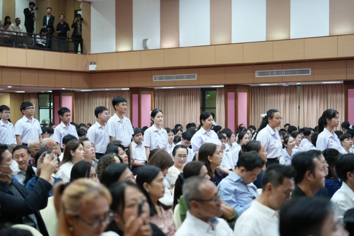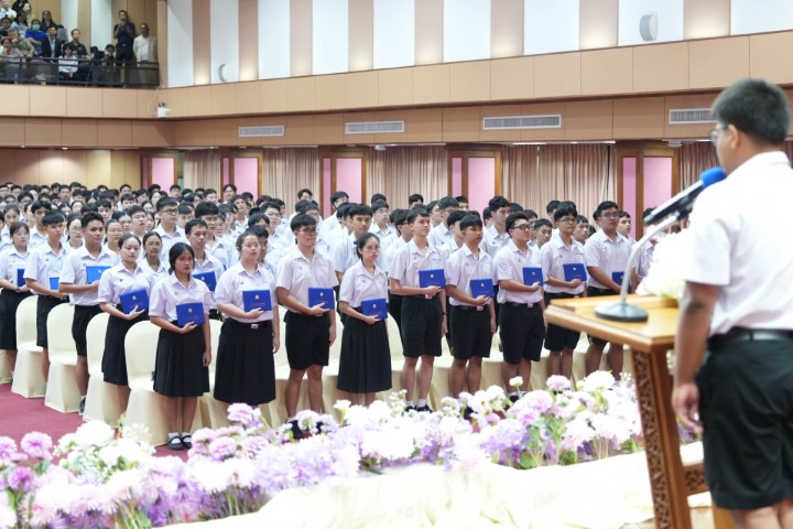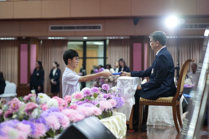 ตลอดเวลาที่น้อง ๆ มาอยู่ที่นี่ 3 ปี โรงเรียนพยายามที่จะสร้างให้น้องเป็นแม่ทัพทางนวัตกรรมให้กับประเทศ เป็นแม่ทัพที่เก่งอย่างสมดุล ละมุนไปด้วยความอ่อนน้อม แล้วก็พร้อมที่จะเป็นบุคคลที่โลกปรารถนา ความเก่งกาจทางวิชาการและความเป็นเลิศทางวิชาการ คือ ดีเอ็นเอ ของน้อง ๆ ทุกคนอยู่แล้ว แต่ความเก่งที่แท้จริงจะต้องมีความสมดุล สมดุลที่ว่า คือการต้องมีทั้งความรู้และคุณธรรม มีอัจฉริยภาพไปพร้อม ๆ กับสุขภาพกายและสุขภาพใจที่แข็งแรง พร้อมรับกับความกดดัน ความผิดหวัง ความไม่สำเร็จต่าง ๆ ที่จะเข้ามาในชีวิตของเรา ความสมดุลนี้เองจะเป็นรากฐานที่สำคัญที่จะทำให้ชีวิตของเรามีทั้งความหมายและมีทั้งความสุข ความหมายก็คือ เราต้องคิดและทำให้มากกว่าสิ่งที่เป็นของตนเอง ซึ่งสุดท้ายแล้วจะนำมาซึ่งความสุขของน้อง ๆ