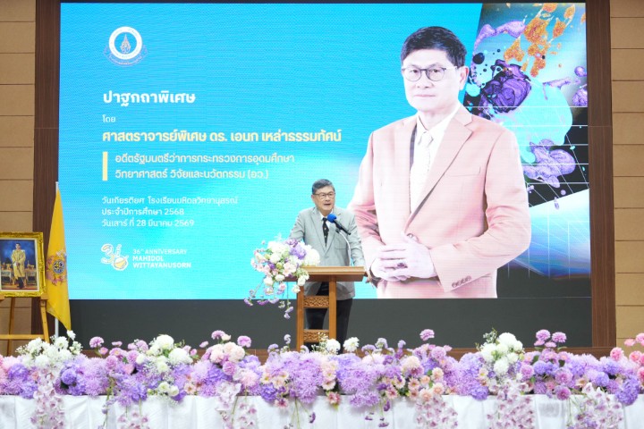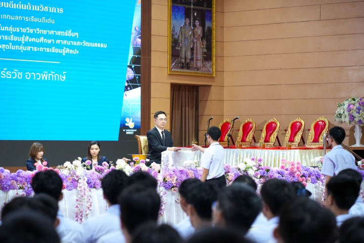 ในโอกาสนี้ โรงเรียนได้รับเกียรติจาก ศาสตราจารย์พิเศษ ดร. เอนก เหล่าธรรมทัศน์ อดีตรัฐมนตรีว่าการกระทรวงการอุดมศึกษา วิทยาศาสตร์ วิจัยและนวัตกรรม ร่วมแสดงปาฐกาพิเศษ โดยถ่ายทอดวิสัยทัศน์เชิงยุทธศาสตร์ต่อบทบาทของนักเรียนในฐานะ “หน่ออ่อนของนักวิทยาศาสตร์” และ “กำลังสำคัญของประเทศ” พร้อมเน้นย้ำว่า ในบริบทที่ประเทศไทยยังคงเป็นประเทศกำลังพัฒนา การยกระดับศักยภาพของชาติจำเป็นต้องอาศัยวิทยาศาสตร์และเทคโนโลยีเป็นกลไกหลัก นักเรียนจึงไม่ควรเป็นเพียงผู้ใช้เทคโนโลยี แต่ต้องก้าวสู่การเป็นผู้สร้าง