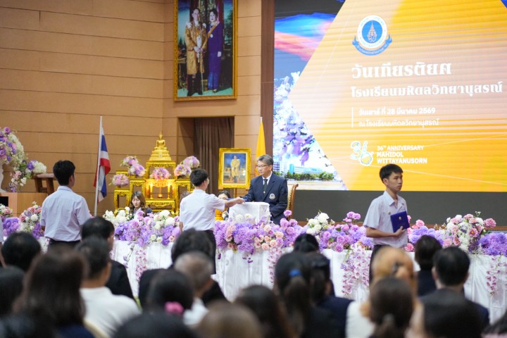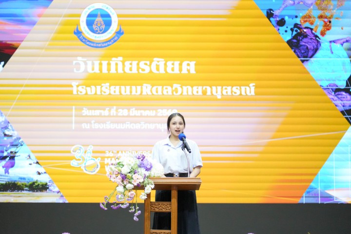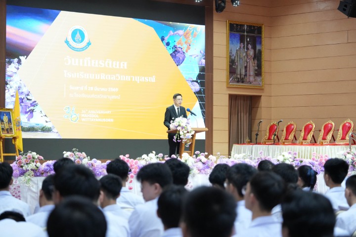 เป้าหมายสูงสุดของการศึกษาที่นี่ไม่ใช่เป็นความสำเร็จเพื่อตนเองเพียงอย่างเดียว แต่ก็คือการเตรียมตัวเองให้พร้อมที่จะอุทิศตนเพื่อแก้ปัญหาที่สำคัญของประเทศและของส่วนรวม เกียรติยศที่แท้จริงไม่ได้วัดที่ชื่อเสียง แต่อยู่ที่ว่าเราใช้ศักยภาพ อัจฉริยะที่เรามี ไปทำให้ชีวิตของผู้อื่นได้ดีขึ้นด้วย ขอให้พวกเราก้าวออกไปอย่างสง่างาม ด้วยความรู้ที่ถูกต้อง ด้วยจิตใจที่งดงาม เป็นความภูมิใจของโรงเรียนมหิดลวิทยานุสรณ์ และเป็นทรัพยากรที่มีคุณค่าที่ประเทศกำลังรอคอย ขอแสดงความยินดีอีกครั้งกับ MWIT Alumni ล่าสุดทุกคน ที่นี่คือบ้านและยินดีที่จะต้อนรับน้อง ๆ เสมอ ขอให้ทุกคนโชคดีครับ”