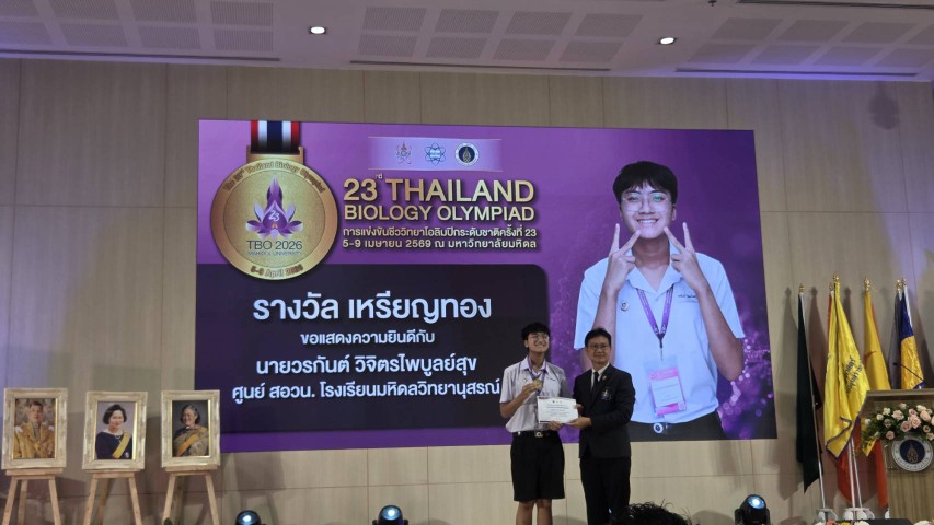 ศูนย์โอลิมปิกวิชาการ สอวน. โรงเรียนมหิดลวิทยานุสรณ์ วิชาชีววิทยา สร้างผลงานโดดเด่นในเวทีการแข่งขันชีววิทยาโอลิมปิกระดับชาติ ครั้งที่ 23 (The 23rd Thailand Biology Olympiad: TBO23rd) ซึ่งจัดขึ้นระหว่างวันที่ 5–9 เมษายน พ.ศ. 2569 ณ มหาวิทยาลัยมหิดล โดยทำผลงานได้ 3 เหรียญทอง 3 เหรียญเงิน พร้อมทั้งรางวัลคะแนนรวมสูงสุดของประเทศ
