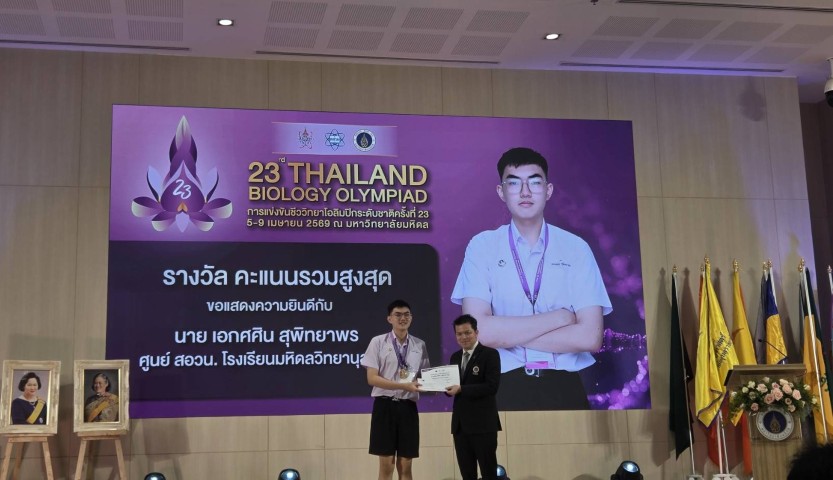 - นายเอกศศิน สุพิทยาพร นักเรียนโรงเรียนมหิดลวิทยานุสรณ์ พร้อมคว้ารางวัลคะแนนรวมสูงสุดของประเทศ